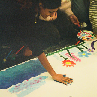Mural PaintingDec 4, 20241 min readUpdated: Jan 29A therapeutic group painting session led by artist and MHI leader Kelsey Bogdan.students gathered to collaborate on a large paintingparticipants worked together and got creative with their painting techniquesThis session encouraged students to focus on the process of making and seeing how their individual contributions could fit into a larger picture
